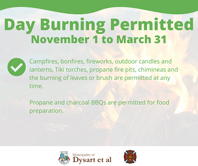 For full details of Dysart's open air burning regulation, read By-Law 2024-26.