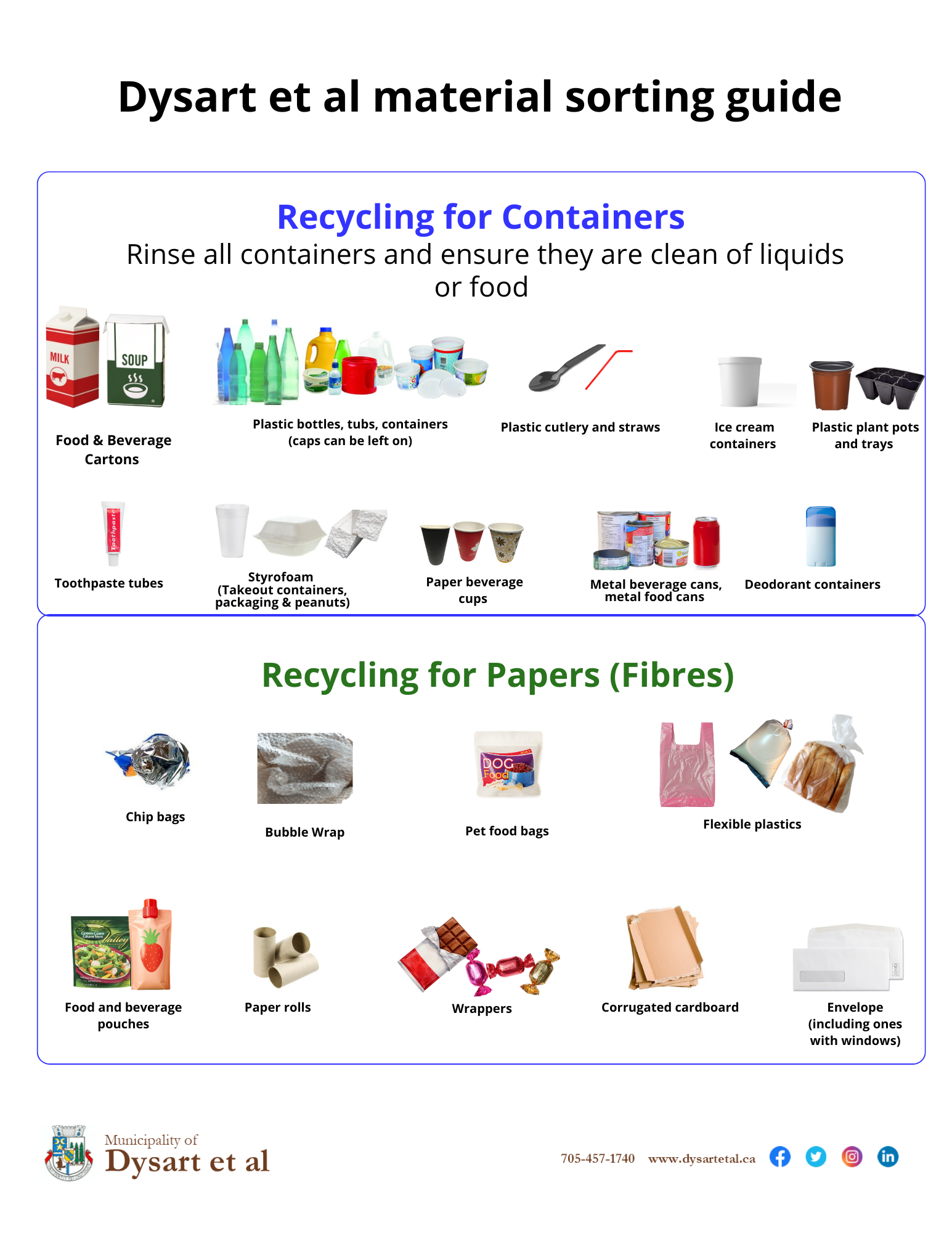 Recycling can be dropped off at the Haliburton, Harcourt, Kennisis Lake, West Bay and West Guilford Landfills.
